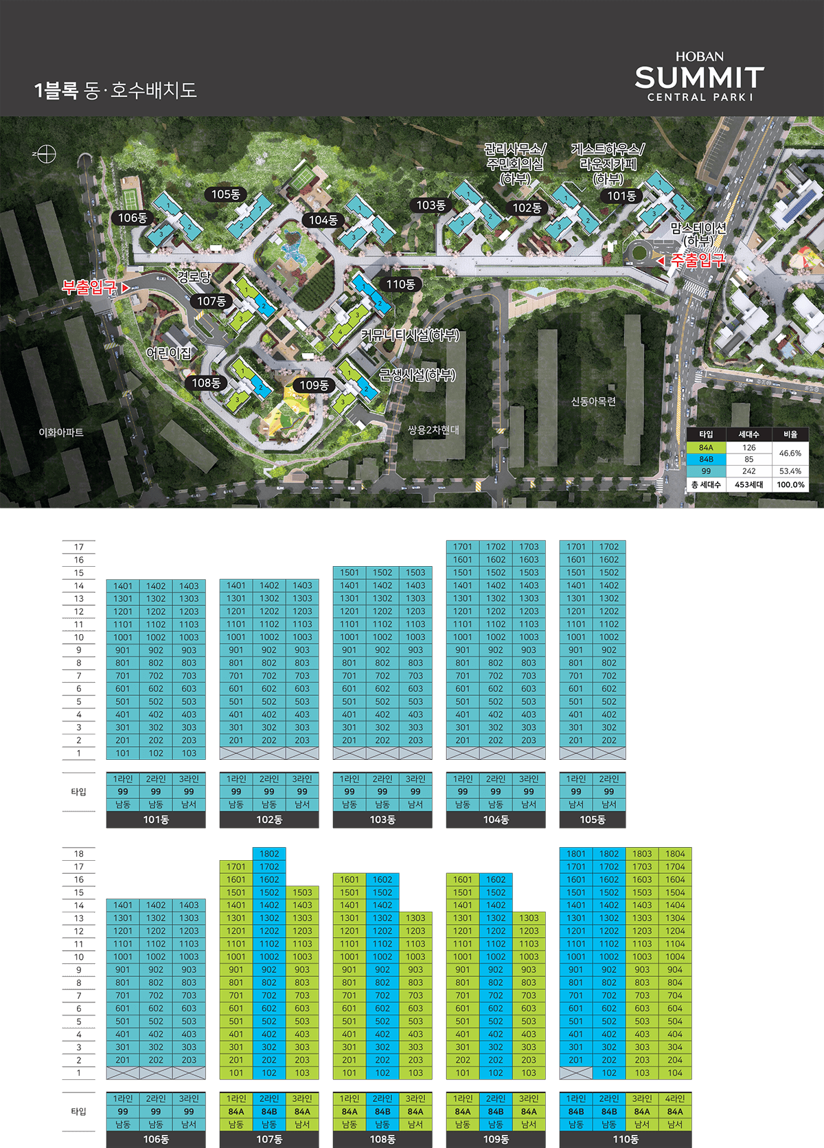 천안 일봉공원 호반써밋은 66㎡, 84㎡, 99㎡형으로 구성되어 있습니다.