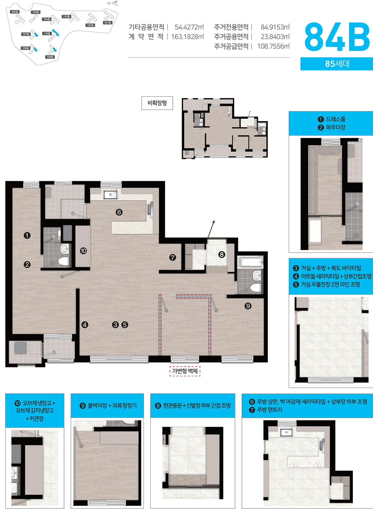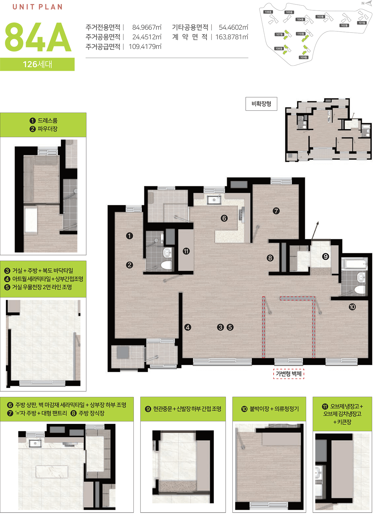 84㎡형: 실거주 수요가 가장 높은 표준형, 방 3개 구조로 가족 단위 거주에 적합.